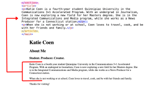 This is another example, this time focusing on the body of the page. Words like “section” and “article” are used. A section defines a section of the document. Then the article is the text written out on that page. “P” stands for paragraph, which is another semantic.