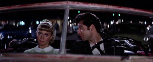 This scene from the movie Grease shows a date Sandy and Danny went on to a drive in movie. If you’ve seen the movie, you’d know there is some conflict between them at this point, after a summer romance ended and they surprisingly saw each other at school. The way Sandy looks in this moment really sets the tone. She seems frustrated and disappointed in how the date is going, which is relatable to many viewers. The way they are dressed shows the time period it takes place in and how different the two characters are. Danny is more edgy with his leather jacket while Sandy is wearing a conservative dress with a girly hair accessory. After this moment, the date gets even worse.