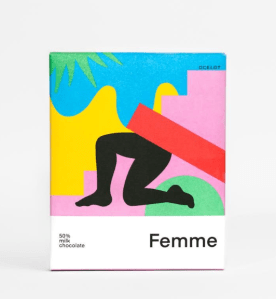 Figure-ground is used in some form on the website as well. This principle explains which elements in a design will be viewed as the focus, while others stay in the background. On the packaging that is heavily featured on Ocelot’s website, certain shapes stand out as the figure, while others become the background. For example, the Femme chocolate bar has what looks like legs running on the packaging. That figure clearly becomes the focus of the design, especially since it is in black.