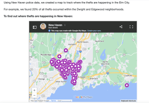 This is an example of news coverage using multiple elements. WFSB Investigative Reporter Sam Smink found where car thefts were happening across Connecticut. Along with her visual news package, she wrote an article and created interactive maps to show viewers where cars were being stolen.