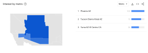 Nevada would be another option of a state to expand in. The interest there is lower than in Arizona and California, but is higher than other surrounding states.